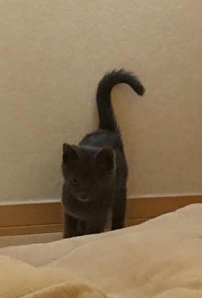 | 特徴(性格など) | 台風19号を乗り越えた強運?翌日に迷い込み保護しました。ロシアンブルーのミックスといった感じの色合い。毛艶も良く元気な女の子です。人懐っこい性格です。 | ||