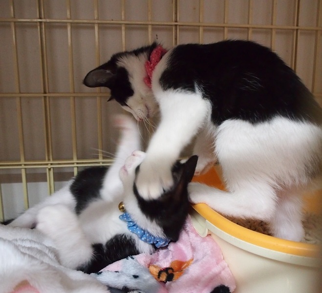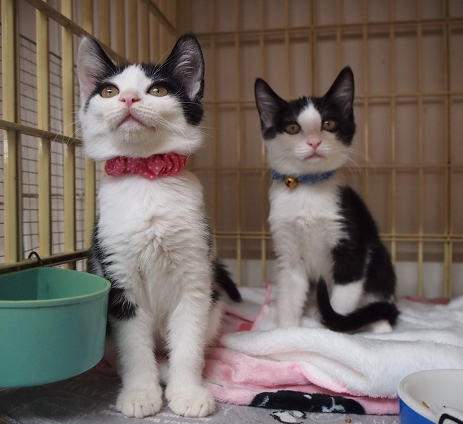 | 特徴(性格など) | 白黒の姉妹ネコです。 健康状態良好 ワクチン接種済み ウイルスチェック(エイズ・白血病)マイナスです。 人に良く馴れていて、おっとりした、とっても可愛い子です。 |