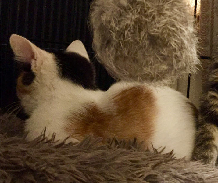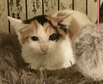 | 特徴(性格など) | ☆仮名:ミケ ☆年齢:推定2ヵ月半 ☆性別:メス ☆性格 やんちゃで好奇心旺盛。 身体の左側にハートマークがあるのが特徴です。 よく遊び、よく食べます。抱っこされるとすぐ落ち着きます。 |
