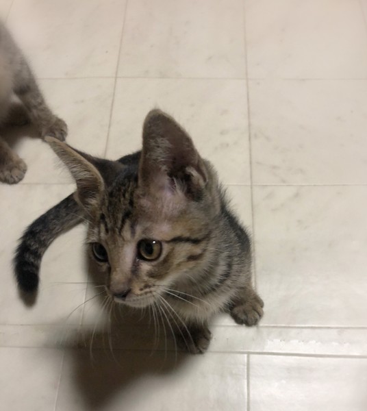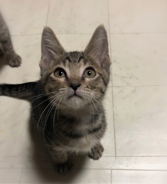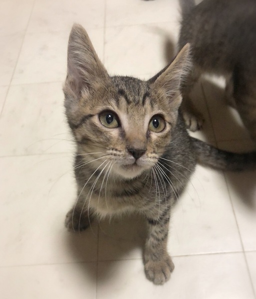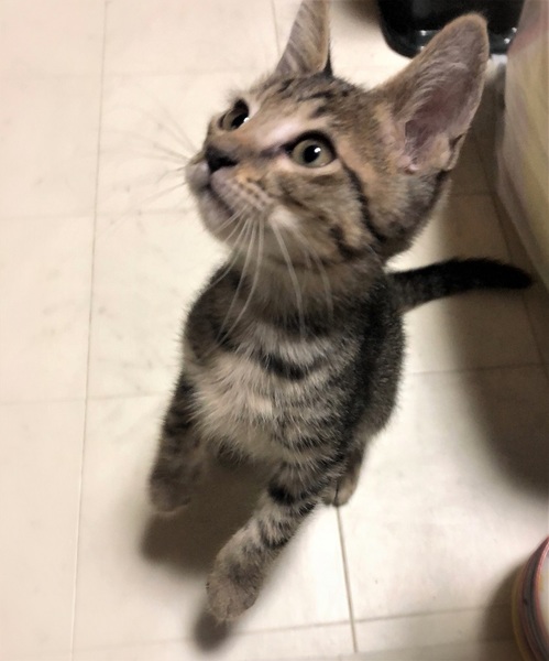 | 特徴(性格など) | 仮名、しうん 細かいしましま・キジトラ柄の女の子。 好奇心旺盛で、遊ぶ事とごはんが大好き。 とても人に慣れていて、目を見て話しかけると、ゴロゴロ喉を鳴らしつつ返事をしてくれます。 |