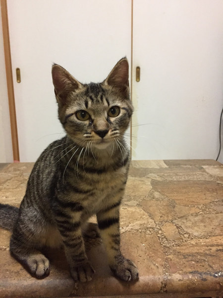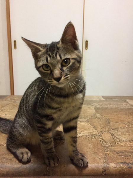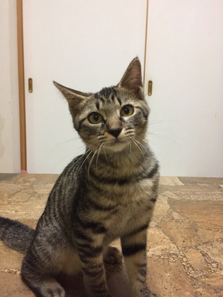 | 特徴(性格など) | あたちは、メイちゃんでしゅ 人も猫のお友達も、だいしゅき♡ 毎日たくさんあそんで、ご飯をたべて、またお昼寝して、起きたらまたあそんで。 毎日楽しいにゃ〜 あたちね、とっても甘えん坊さんだから、ねんねする時は、あたちと一緒にねてくだしゃい。 甘えさせてくれて、遊んでくれる家族が欲しいにゃ〜 よろちくおねがいしますにゃ ―――――――――――――――――――――――――――――― 人懐っこく、スリゴロ甘々のキジトラ子猫ちゃんのご紹介です。 子猫ちゃんと言っても、お届けする頃には4ヶ月になりますので、避妊手術をしてからのお届けとなります。 とにかく、人懐っこくてかわいい子です。 寝る時もお布団の中に入り込んで一緒に寝てくれます。 人も大好きですが、どんな猫にも動じない子です。 大変飼いやすい子ですので、猫飼い初心者のご家庭にもオススメできます。 お子さまがいても、お子さまのアレルギー検査をパスしていれば、良い遊び相手になれると思います。 お留守番OK。 先住猫OK。 ケージは、必要ありません。いきなりフリーからスタートでOKです。 メイちゃんを迎えてくださる飼い主さんは、堪らなくかわいいと思います。 ぜひ、よろしくお願いします。 |