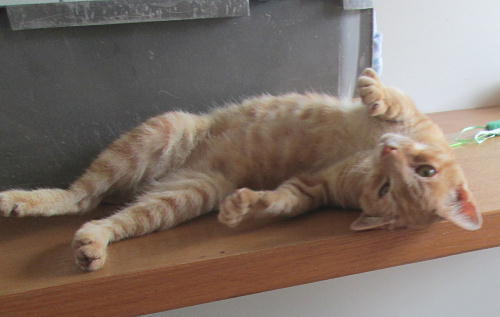 | 特徴(性格など) | 仮愛称:「ゲン」くんと名付けました。 性格:人が大好き、直ぐにお腹を見せてゴロリゴロリ。すり寄って来る甘えん坊くん。 医療面:健診済み・駆虫済・ノミダニ駆除済み・ワクチン接種済み その他、医療面は今後、予定しています。 その他:健康状態は良好です。 |