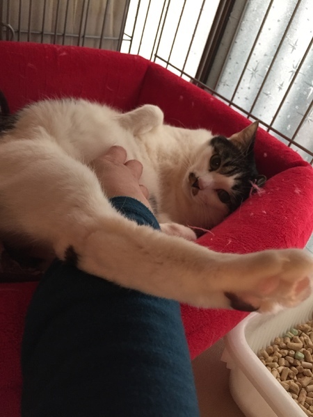 | 里親募集する理由 | 仔猫の頃に保護し里親募集をしましたが、 なかなかご縁に恵まれず長らく我が家で居候中です。 |