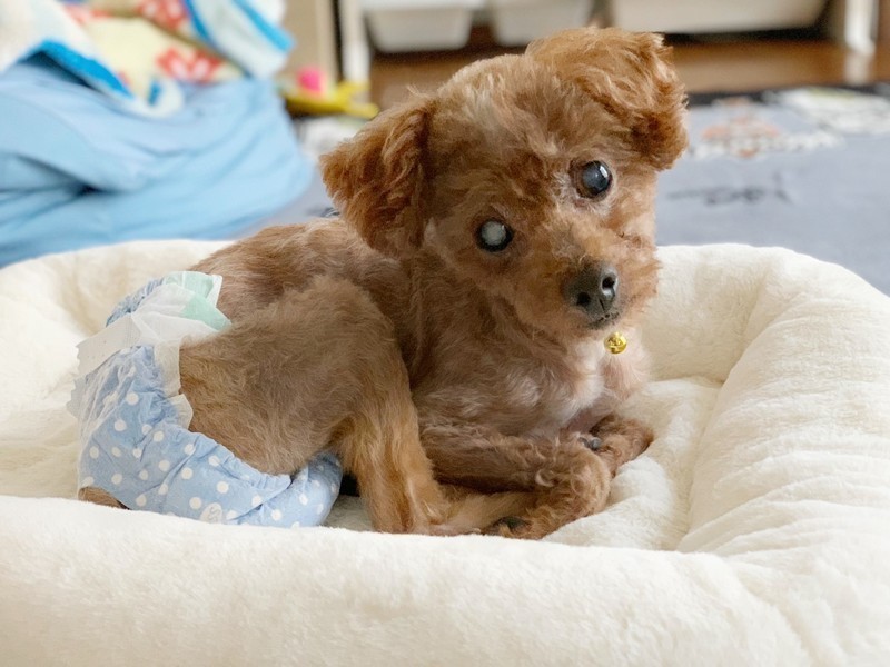 | 特徴(性格など) | 4.2キログラムのミナミくんです。 目が見えにくいのですが、散歩が大好きです。元気に散歩をします。 夜は一緒に同じ部屋にいると泣きません。ゲージに入れると鳴きます。 甘えん坊です。 目が見えないため、急に触ると唸ります。だんだん慣れてくると安心してきます。 環境に馴染めば、安心し、落ち着いてきます。 気長におおらかにミナミくんを受け入れていただけないでしょうか。 幸せになってほしいです。 |