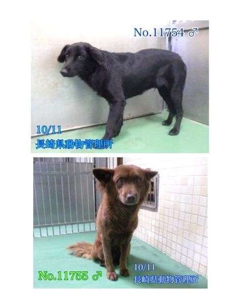 | 特徴(性格など) | 〜10/23〜 ⭐️追記⭐️ 黒い子は譲渡になりました! 可愛いフラットコーテッドレトリバー風の、推定2〜3歳位の綺麗な黒毛の垂れ耳男の子と、ブラウンの仲良し男の子2匹(兄弟かもしれません)が助けを待っています! 10/11(金)長崎県島原市有明町二つ石にて保護され保健所収容、その後殺処分機のある管理所へ移送されてきました。 野良ちゃんが産んだ子なのか、捨てられたのか、この地域は野良ちゃんが多く、周りに民家の少ない山の中です。誰かにご飯をもらって生きてきたようで人に馴れています。 彷徨っている間、暑さや雨風、空腹にも苦しんだことでしょう。 保護時、首輪や胴輪などは何もしていませんでした。(写真の首輪は管理所で付けたものです) 見た目の推定になりますが体重は13〜5キロ前後位でしょうか。 柴犬より一回り位、やや大きめの中型サイズです。 大人しく穏やかで、おそらく生まれて初めての首輪かもしれませんがお利口さんに付けさせてくれました。尻尾フリフリ寄ってきてくれますし手からおやつも食べてくれます! 茶色君はお腹も見せて甘えてくれます(๑•ᴗ•๑)♡ 今のところ無駄吠えも無く、仲良く無邪気に2匹でじゃれながら遊ぶ姿も可愛いです(^^)♡ リードをつけて人と一緒にお散歩をした経験が無いようなので無理もありませんがまだイヤイヤという様な仕草をします、これから徐々に練習になります。 優しい職員さん方が、怖くないよ、幸せになれます様にと、毎日触れ合いながら、一生懸命にお世話してくださっています。 ちょっと怯えているだけなので人間が焦らずゆっくり長い目で見守りながら、根気よく寄り添い愛情を持って接すれば、長期戦どんとこい(^^)と広い心で迎えていただければ! この子達ならきっとじきに新しい家庭に馴染んでいけるのでは、と思いますฅ•ﻌ•ฅ ⭐️必ず室内飼育で、お早めに不妊(去勢)手術をして頂ける方、なるべくお留守番の少ない沢山優しく触れ合って頂けるご家庭。 ⭐️室内トイレの躾も1からとなります。 未去勢で片足を上げて排尿します。何かと手がかかり大変ですが(マナーベルトやL字型のトイレを用意など)覚悟と理解で受け入れて下さる方m(_ _)m ⭐️犬の飼育経験があり愛情を持って犬をしっかり躾することが出来る方、お散歩や運動に充分時間をあてられる方、場合によりトレーニング教室なども視野に入れて考えてくださる方。何卒宜しくお願い致します。 ※狂犬病予防接種、フィラリア予防や混合ワクチン実績はありません。 以上の点を踏まえ、この子達の置かれた状況をご理解のうえ、全て受け入れ寄り添っていただけるご家庭で可愛がっていただきたいと祈っております。収容された全ての子は身勝手な人間による被害者であり、何も悪くありません( ; ; ) 家族の一員として生涯大切にしてくださる優しいご家庭とのご縁が結ばれ幸せになれます様に。 1日も早く温かな愛情を目一杯注がれながら、元気に幸せに生きてほしいです。人間より遙かに短い生涯です。 硬いコンクリートの上、檻の中で、命の期限が迫る中、ひたすら優しい素敵な里親様を待ち続けています。 悲しい事にこの世の中、人間に飼われないと犬は生きていく事が出来ません。 捨てる飼い主、探さない飼い主、医療にかけない飼い主、虐待する飼い主…飼い主を選ぶ事も出来ません。 過酷な環境の中必死に生きてきた、まだまだこれからのこの子を、生涯大切に可愛がって下さる優しい素敵な里親様、どうかお願い致します。きっと、必ず最高の家族になります! もうこれ以上悲しい辛い目に遭わせたくありません。本当の愛情、温もりを知ってほしい、辛かった分、寂しかった分、まだまだこれからの犬生はのびのびと幸せいっぱいに愛し愛されて、生きてほしいと願っております。家族の一員に迎え、愛ある温かなお家で、これからの生涯を共に暮らして頂けませんか。 何卒宜しくお願い致します(๑•ᴗ•๑)♡ ◆健康状態 今のところ体調不良などは見受けられず、フードもよく食べています。 管理所では収容するのみ、になり、健康診断やワクチンなどは一切行っておりません。 ※狂犬病予防接種、フィラリア予防や混合ワクチン実績はありません。 収容動物の健康面の保証、及びトライアル制度は無い為、例えどんな病があろうとも全てを受け止め丸ごと受け入れて下さる方、終生愛情飼養して下さる方のみ への譲渡となります事をご理解、ご了承の程何卒宜しくお願い申し上げます。 ※譲渡後は必ずお早めに病院でメディカルチェック(血液検査、便検査、フロントライン、シャンプー等)去勢手術を確実にお願い致します。 ★去勢、避妊手術は長崎県動物管理所より譲渡条件の1つになります。 ★特にまだ馴れていない子や臆病な子は逃げよう、隠れようとする傾向があります。思いがけない身体能力を発揮し、高い塀や柵を飛び越える可能性があります。 急に走り出してリードから手を離してしまった、一瞬の隙をつ