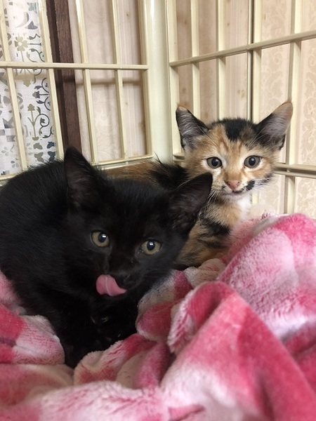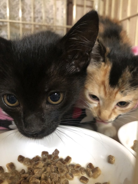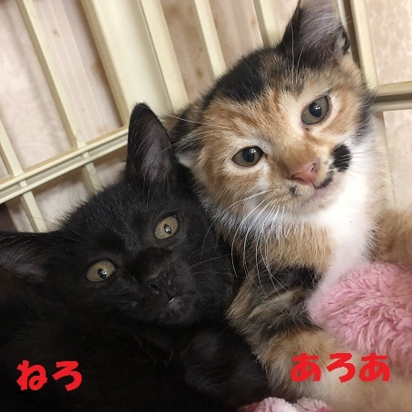 | 特徴(性格など) | 黒が「ねろ」 三毛が「あろあ」 おそらく兄弟と思われます。 2匹いつも一緒で仲良しです。 動画も随時ブログで紹介します。 |