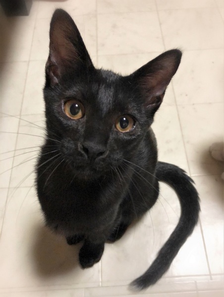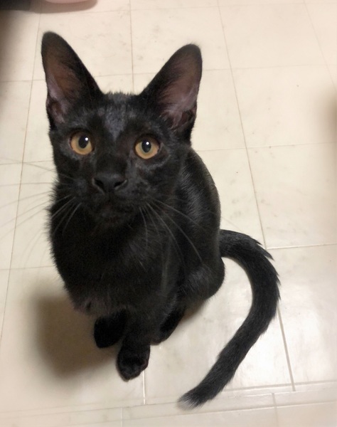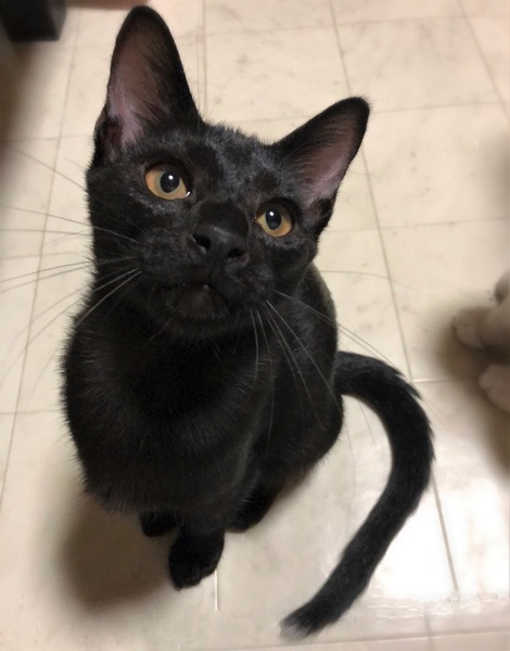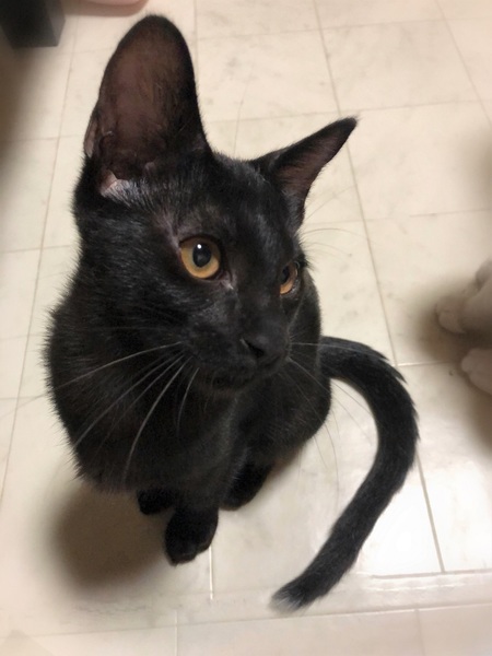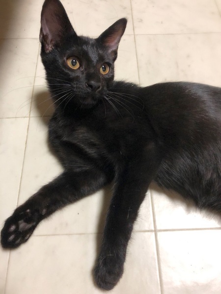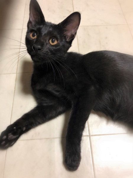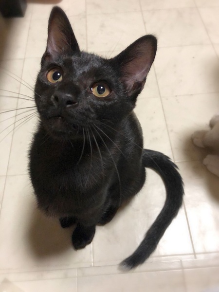 | 特徴(性格など) | 仮名、ゼロ シッポの先に白い差し色・ピカピカ黒の男の子。 とんでもない甘えん坊さんで、目が合うとゴロゴロ~撫でるとふみふみ~。 子猫らしく元気に遊びますが、おっとりした性格のように感じます。 |