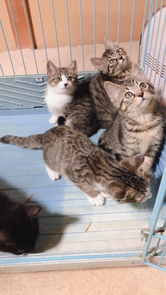 | 特徴(性格など) | 推定3ヶ月の子猫2匹の里親さんを探しています。 突然現れた雌猫が子猫を我が家に連れてきました。 親子共保護しました。 子猫は5匹いましたが、 3匹は里親さんが内定しました。 今回 キジトラオス 黒猫オス 2匹の里親さんをさがしています。 駆虫済み ワクチン接種済み 母親の血液検査済み(エイズ・白血病・・・マイナス) (母親は避妊手術済み) 2匹ともとても人慣れしています。 |