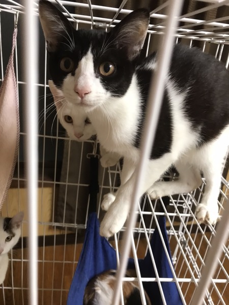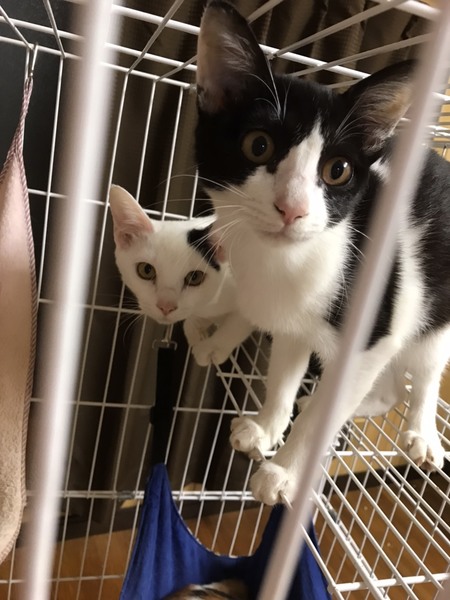 | 特徴(性格など) | ハチワレちゃんはとても人懐っこくて優しい子。 三毛ちゃんは、まだ怯えてますが、可愛いお顔しています。 |