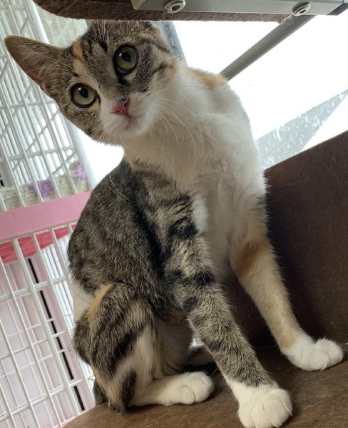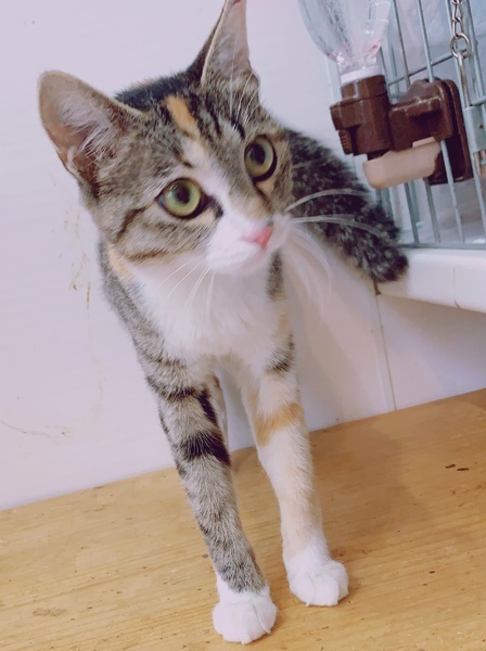 | 特徴(性格など) | 「ニッキ」という名前の雑種(キジ三毛)の女の子です。 4匹の元気な子供を連れて保護されました。 ベタベタではないですが、抱っこできます。 よく食べて子猫にも優しいお母さん猫です。 FIV・FeLV ともに陰性 |