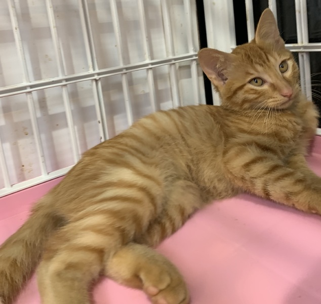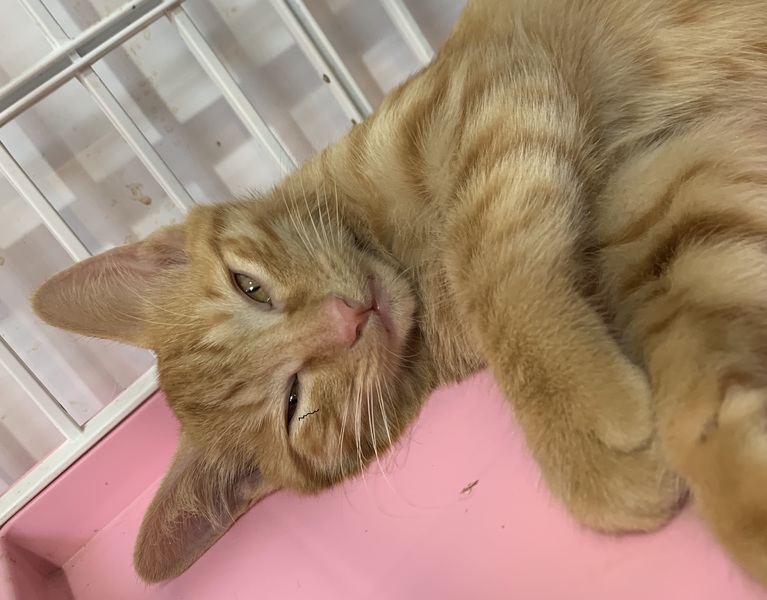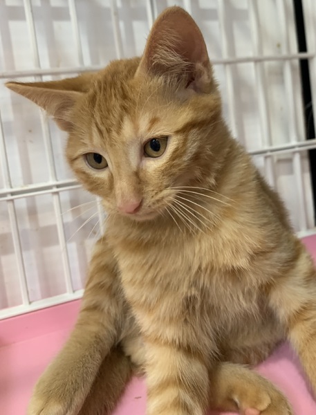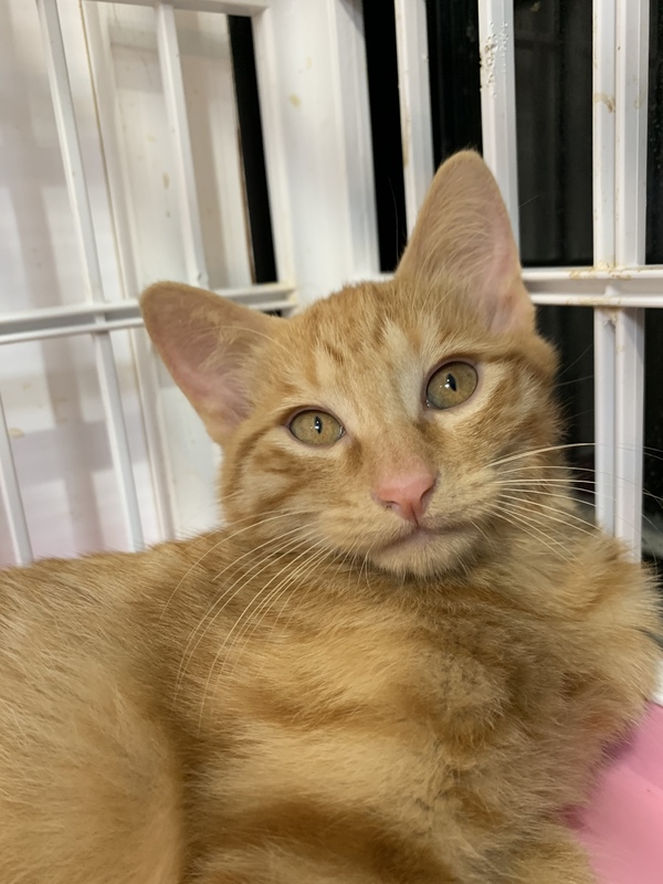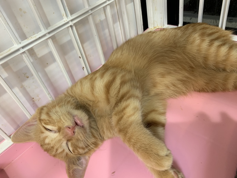 | 特徴(性格など) | 「ハッカ」という名前の雑種(茶トラ)の男の子です。 元気に兄妹で遊んでいます。 性格は少し控えめです。 元気いっぱいで兄妹で毎日プロレスしてます。 食いしん坊の可愛い茶トラ君です。 ニッキ母さんの子供です。 FIV・FeLV ともに陰性 |