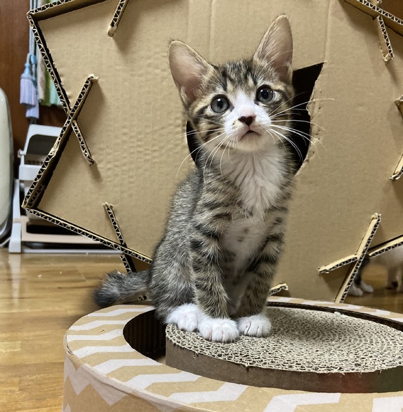 | 里親募集する理由 | 名古屋市動物愛護センターからの引き出し子猫です。姉弟3匹で保護された子猫です。ミルク猫の時期からお世話しています。 |