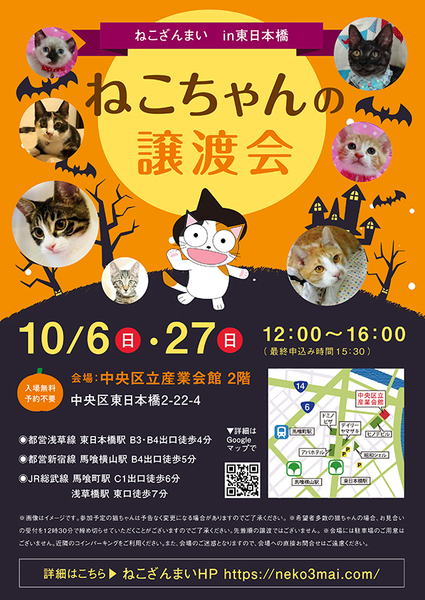 | その他(譲渡条件など) | ★仔猫ご希望の里親様★ 仔猫ちゃんたちは、まだ体がしっかりしていない赤ちゃんです。 下痢だけでも数時間対応ができなかっただけ死に至る事もあります。 その為、月齢に応じたお留守番時間を設けさせていただいております。 また、子猫ちゃん(6ヶ月未満)の里親様には子猫支援金のご協力をお願いいたしております。 ★猫ちゃんとのお見合いは譲渡会で!★ ねこざんまいの猫ちゃんは譲渡会でのお見合いのみとなります。 『この子はいつ譲渡会に参加するの?』『譲渡会場の場所はどこ?』など はねこざんまいホームページをご覧ください。 https://neko3mai.com/ ★楽しく猫ちゃんと触れ合って♪★ ねこざんまい譲渡会は、猫ちゃんも里親様も保護主も笑顔で過ごせる譲渡会を目指しています。 これから20年以上、楽しい時も、悲しい時もいつも傍にいてくれる大切な家族になる猫ちゃんです。 会場には沢山の猫ちゃんがいます。 1匹1匹、触れ合って猫ちゃんとお話ししてください。 『初めて猫ちゃんを家族に迎える方』 『先住猫ちゃんのお友達を迎える方』など トライアルの仕方や先住猫ちゃんと仲良くなるコツなど経験豊富な保護主やスタッフにお気軽にご相談ください! 猫を愛し、そして猫に愛されている猫好きスタッフと保護主がアドバイスさせていただきます。 ★里親希望のみなさまへ★ ペットではなく、家族一員としてたっぷり愛情を注いでくださるご家庭をお待ちしております。 恐れ入りますが、 ・学生の方 ・一人暮らし、同棲中の方 ・子猫、若猫希望の60歳以上のみのご家庭 ・脱走防止対策にご協力いただけない方 は原則お断りさせていただいております。 ただし、預かりボランティアさんとして新しい家族が決まるまでの間、猫ちゃんを預かっていただく道もございます。 参加猫ちゃんは、それぞれ保護主(実際に猫ちゃんを自宅に入れ、保護をしている方)が異なります。 詳しい条件なども異なる場合がございますので、会場内で直接保護主とお話ください。 〖共通条件〗 1.終生飼育 2.完全室内飼い 3.脱走防止対策へのご協力 4.避妊去勢手術 5.契約書類へのサイン 6.定期報告 7.医療費等の負担 当日の猫ちゃんを連れて帰ることはできません。後日、保護主が里親様のご自宅までお届け致します。 その為、移動の際の猫ちゃんの負担を月齢などから考慮し、お届け地区を限定させて頂くこともございますのでご了承ください。 |