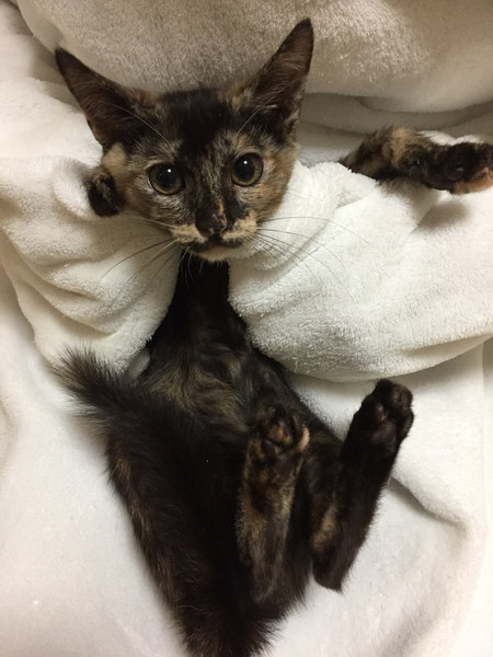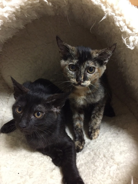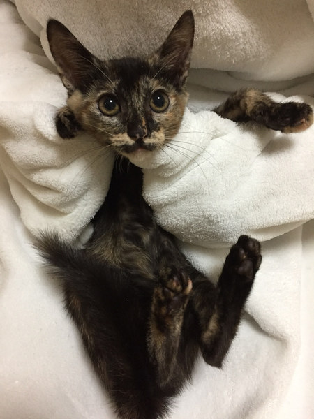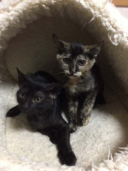 | 特徴(性格など) | あたちは、ふみちゃんでしゅ いつも笑っているような、ニコニコ顔がチャームポイントにゃんだよ。 キョウダイの中では、一番シャイなあたちは、いつもみんにゃの後を追って遊びに参加してるんだよ。 同じキョウダイの中では、旬くんと仲良しです♡ ジョートカイに参加するので、ぜひ、アタチに会いに来てくだしゃいね。 そして、出来れば旬くんと一緒に迎えてくれたら嬉しいにゃ〜 ―――――――――――――――――――――――――――――― 大人気のサビ猫の子猫ちゃんのご紹介です。 ニコニコ顔のかわいい3ヶ月のメス猫ちゃんです。 人馴れは問題ありませんが、キョウダイの中では、少し慎重派タイプです。 離乳間もない頃に保護したので、人に対する警戒心がそれほどありません。 ふみちゃんの性格は、キョウダイの後をついてまわって、遊びに参加するようなタイプ。末っ子タイプです。 ですから、できれば、同じキョウダイの旬くん(黒猫)と一緒にお迎えくださるとありがたいです。 人も猫も大好きなので、とても飼いやすい子だと思います。 まだまだ遊びたい盛りなので、おもちゃなどで遊んであげてください。 猫飼い初心者OK。 先住猫飼いOK。 お子さんOK(アレルギー検査をパスしているご家庭) お留守番は、パートタイムぐらいの半日のお留守番ぐらいならば可能です。スタッフまでご相談ください。 ふみちゃんを迎えてくださる飼い主さんは、堪らなくかわいいと思います。 文句なしのかわいこちゃんですので、ぜひ、よろしくお願いします。 |