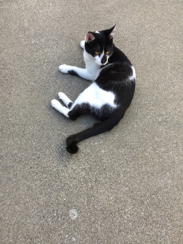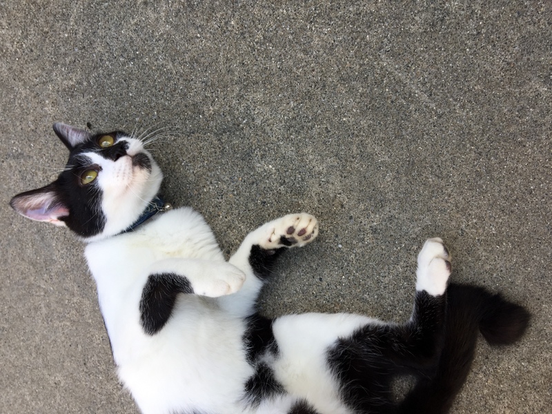 | 特徴(性格など) | すぐゴロゴロして撫でてーって要求する人大好きな白黒ネコです。ちょっと先のほうが曲がった鍵シッポです。 | ||