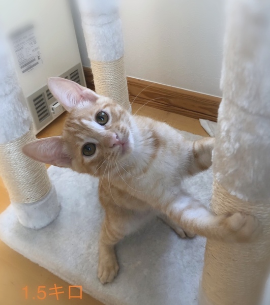 | 特徴(性格など) | 9月の上旬に保護し家猫として生活しているので人馴れしていてとてもかわいいです。2匹います。 ⚫️まんまるお目目で、ちょっと薄い茶色のふわふわ毛並み。まっすぐ伸びたしっぽ。怖がりさんなので、知らない人を見ると「シャッ」と言ってしまいますが、しばらく一緒にいるとなれてきて抱っこもさせてくれます。 ⚫️薄い茶色でふわふわの毛並み。しっぽの先がカギの様になって太くなっています。 鳴き声がかすれ声です。 甘えんぼうな性格で、猫同士で居ると寄って来ないのですが、1匹になるとかすれ声で近寄って来て甘えます。 大きな猫にも甘えて寄っていきます。 |