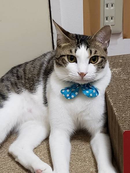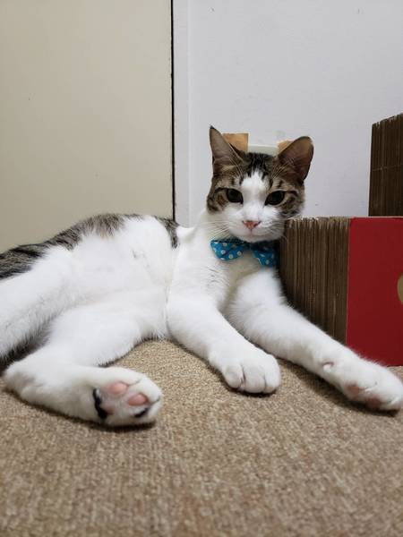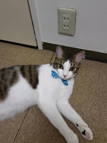 | 特徴(性格など) | 性格・特徴 2018.12.3生まれ(推定) 毛色:キジ白 きじ白のイケメン美男子! とっても人懐こくて、やんちゃ盛りの男の子♂です。 人と触れ合っているのが好きで、近くに来るとすりゴロの甘えん坊、一緒にお昼寝も出来ますよ☺️ おもちゃで遊ぶのもとっても大好きでアクティブに動き回ります! 座ってると撫でてほしくて膝の上に乗ってきて催促します! こんなに甘えん坊で元気いっぱいなアレクならすぐにあなたのお家の家族の一員になれる(はず?) 是非ともお迎えして頂ける方、よろしくお願いします! |