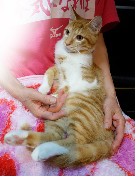 | 里親募集する理由 | あるスーパーの前に、とても人馴れしている子猫が何日もいるので何とかしてあげたい、との相談があり保護しました。 | ||