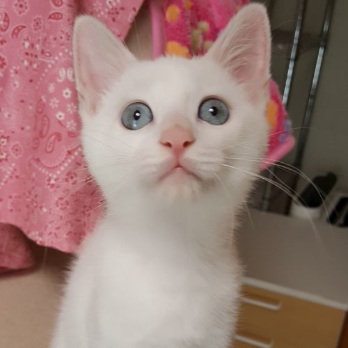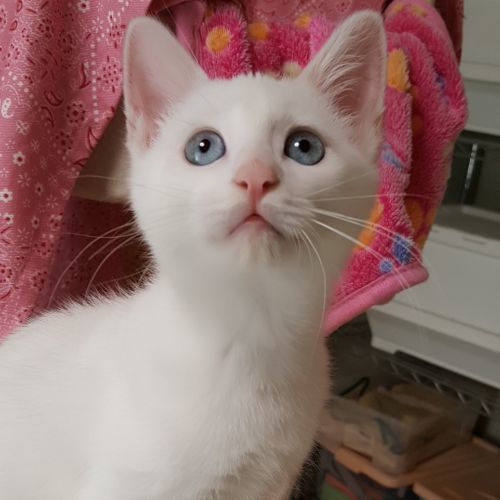 | 特徴(性格など) | 仮に「ムース君」と呼んでいます。 白猫ブルーアイのイケニャンです。 乳飲み子から人が育てましたので、ゴロゴロの甘えん坊さんです。 部屋に入ると、にゃーっと寄って来て、お膝に乗ったり肩に乗って、ゴロゴロです。 マフィン君と兄弟です、 兄弟でもらって下さる方大歓迎です。 預かりブログです。http://jojo148.blog93.fc2.com/ |
