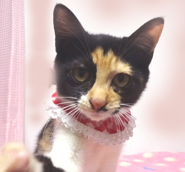 | 特徴(性格など) | 【猫の仮名】 クララちゃん (担当 松嶋) 【毛色・柄】 三毛、長いシッポ おちゃめで甘えたで大変人慣れしています♪ 猫を飼うのが初めての方でも大丈夫です♪ 走っても大丈夫なペット可のお住まいで、家族の一員として生涯大切にして下さるご家族を募集しています。 |