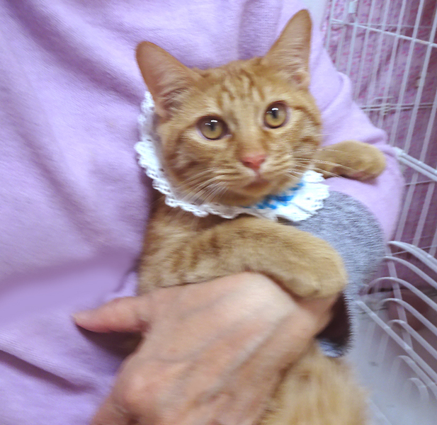 | 特徴(性格など) | 【猫の仮名】 メルくん (担当 松嶋) 【毛色・柄】 茶トラ、先かぎシッポ 乳飲み子から育てたので大変人慣れしています♪ 猫を飼うのが初めての方でも大丈夫です♪ ●ウイルス検査(エイズ・白血病検査) 陰性 ●ワクチン 1回 ●蚤取り 1回 ●駆虫 2回 ●便検査 2回 ●シャンプー 2回 ペット可のお住まいで家族の一員として生涯大切にして下さるご家族を募集しています。 お一人暮らしの方は女性に限らせていただきます。 |
