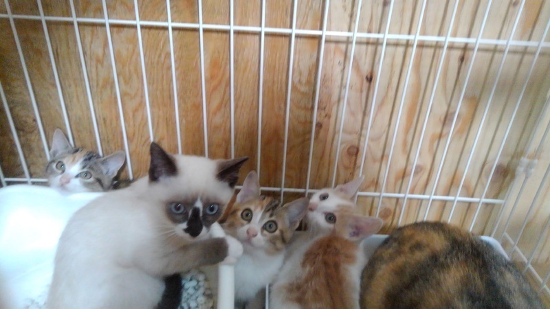 | 特徴(性格など) | ※白茶トラ♂️割りとマイペースは里親決定しました※シャム柄♂️高いところが好きは里親決定しました 残り2匹です が現在2匹とも話し合い中です 三毛 ♀️猫じゃらしに本気 ※現在話し合い中です 三毛 ♀️小さい。色々よく潜る ※現在話し合い中です |