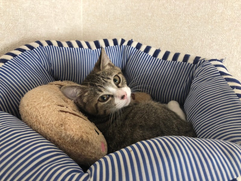 | 特徴(性格など) | 2019.6.3生まれ(推定) 毛色:キジ白 短め靴下とシッポが特徴のキジ白の女の子。 真ん丸おめめにイカ耳・困り顔が得意技! 預かりボランティア宅で、大人猫や子猫達に囲まれ生活しているので、猫慣れしています。 譲渡会では他の子の陰に隠れてしまうビビリな性格ですが、お家の中では元気いっぱいのお転婆さん。 先住さんがいるお宅でも、留守番が多めのお宅でも、マイペースに過ごせるタイプです。 譲渡会での抱っこは苦手ですが、その時に見せる困り顔がとってもキュートで心を射抜かれること間違いなし!! |