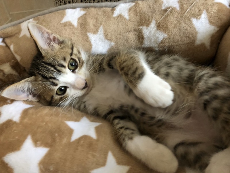 | 特徴(性格など) | 2019.7.11生まれ(推定) 毛色:キジ白 自由奔放、甘え上手な末っ子気質。 キリッとフェイスにくるりん尻尾白靴下を履いたイケメン サケ君。 元気いっぱい、人馴れバッチリ、抱っこも大好き!! 遊びに夢中になると大きなお兄さん猫にも負けません。 眠くなると肩までよじ登ってきて、ゴロスリしちゃう愛されキャラ。 一度抱っこしたら手放せなくなっちゃいます。 |