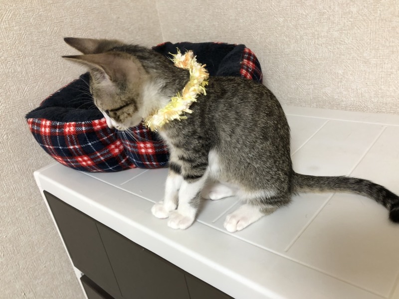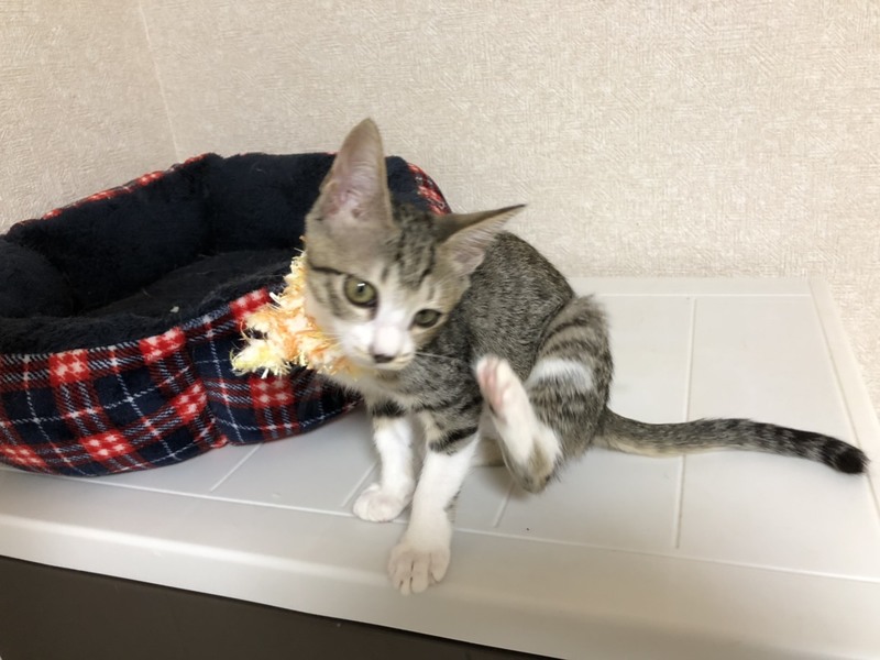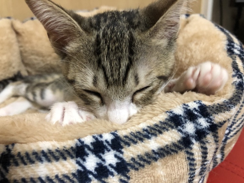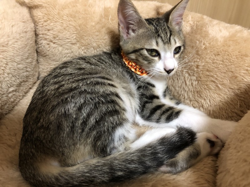 | 特徴(性格など) | 2019.7.11生まれ(推定) 毛色:キジ白 スマートボディに細長い尻尾、長靴下を履いたキジ白の女の子。 尻尾の先は触るとわかる隠れ鍵しっぽ♪ 猫大好き、人間大好き、毛布大好き!! 毛布に潜り込み、目を細めてフミフミする姿はまるで赤ちゃんです。 横になっていると、首元に巻きついてきてゴロゴロスリスリ。 常に誰かに寄り添って寝たい甘えん坊さんです。 一人での長時間のお留守番は苦手なので、お留守番の少ない環境や、兄弟猫と一緒、又は面倒見が良い先住猫さんがいるお家が理想です。 |