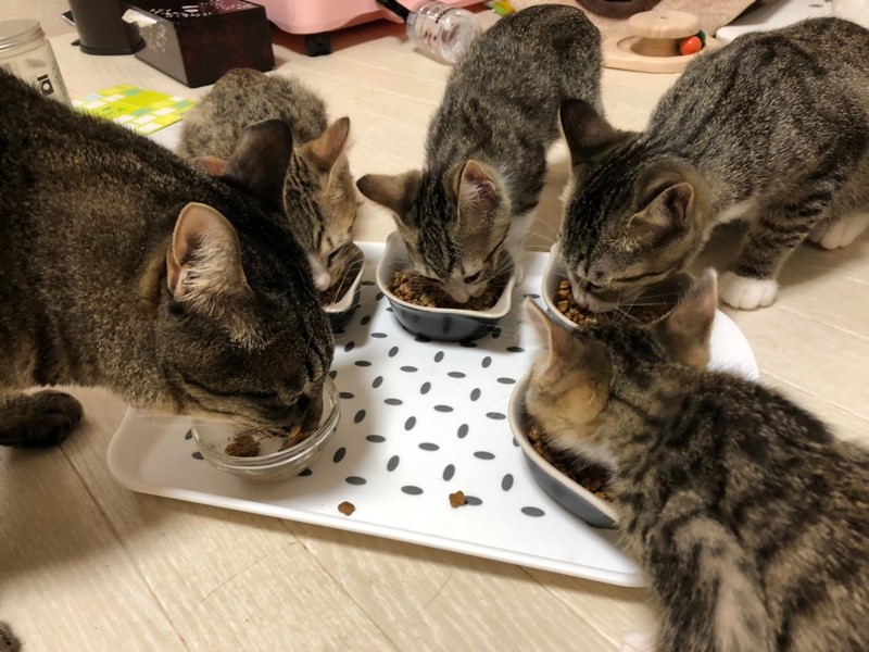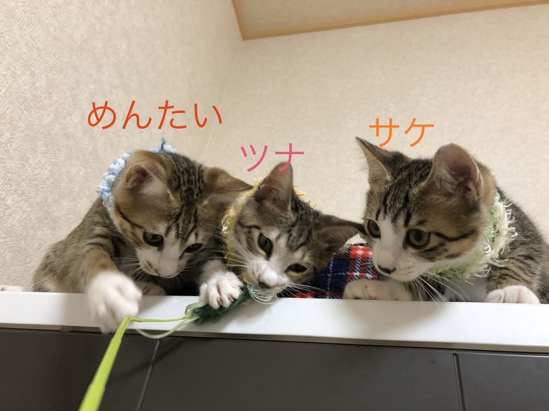 | 里親募集する理由 | 餌やりさんのお宅で生まれた子猫。 台風被害にあい、餌やりを継続できなくなってしまった為、風邪をひいていた子猫6匹を保護しました。 現在預かりボランティアのお家で沢山の子猫と一緒に元気に成長中です。 兄妹猫:サケ・めんたい・たらこ・おかか・こんぶ |