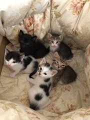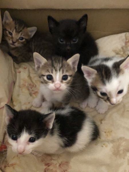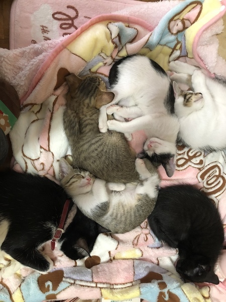 | 特徴(性格など) | 真ん中の左の子は里親が決まりました。 上の2匹と真ん中の右の子は男の子です。遊ぶ時は活発ですが休む時は膝の上に乗ってきて甘えてきます。寝る時は一緒にベッドで寝てるので甘えん坊です。 |