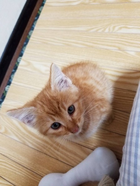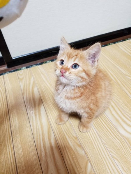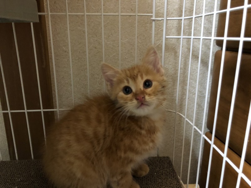 | 特徴(性格など) | 茶トラの雄、短尻尾です。 ウエットご飯が大好きです。 人見知りせず活発な子です。 おトイレは、ゲージ内のおトイレにちゃんと出来ます。 |