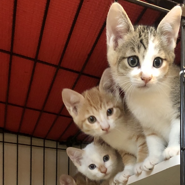 | 特徴(性格など) | 10/17現在 今日生まれて初めて外に出ました。1回目のワクチンです。ドッキドキでシャーシャー言ってしまいました。840g-1000gみんな健康優良児です。 ワクチン後も変わりなく元気です。落ち着いたらいよいよママは手術して元の場所に戻ります。 三毛ひまわり(メス):本当に可愛らしい三毛ちゃんです 白ましろ(オス):シールポイントなのかもしれません、最初より耳や尻尾が少しベージュがかってきたと思います。ブルーアイです。 白まふゆ(メス):オスより一回り小さいだけのそっくり兄妹です 茶白ラテ(メス):茶色が薄いのがメス 茶白モカ(オス) どの子も尻尾の先がちょっとだけ鍵尻尾、幸せを引っ掛けてくると言われています。長い尻尾です。 好奇心旺盛で兄妹仲良しです。 健康状態今はとても健康で元気です 母猫のウイルス検査(エイズ・白血病)陰性 →他の猫と接触がないので子猫も陰性です ワクチン(1回) 駆虫 検便 爪切り |