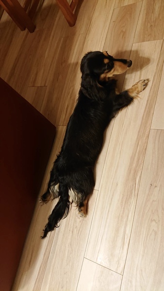 | 特徴(性格など) | ミニチュアダックスのブラックタンです。人間や犬に対して社交的で人なつっこく噛み付いたり怒ったりなどはしたことはありません。小さい子供にも優しいです。とても元気でボールや骨のおもちゃで遊ぶのが好きです。夜は飼い主が寝ると、自分の寝床できちんと朝まで大人しくしています。 子犬(10ヶ月)の頃に1度紐を誤食して嘔吐し、お腹の中のものを取り出す手術経験がありますが現在は治癒し健康です。誤食に関してはペットスクールに通い、しないようしつけをしました。トイレの失敗もあまりありませんが、環境が変われば失敗する可能性はあるのでそこはご了承下さい。また、チャイムの音に反応して吠えることがあります。 |