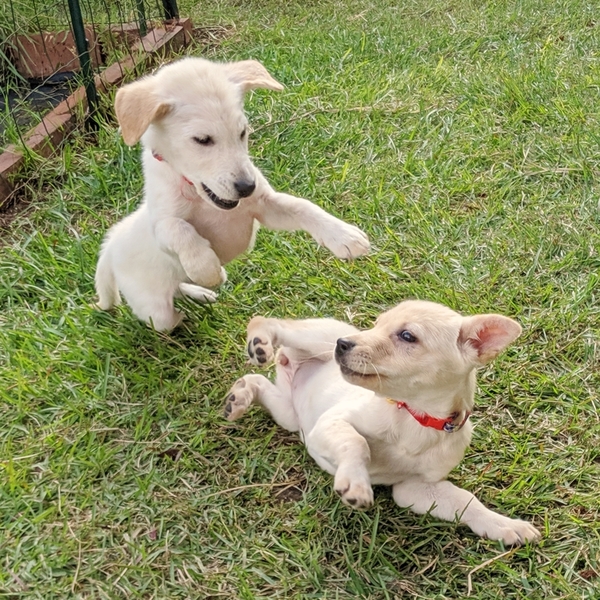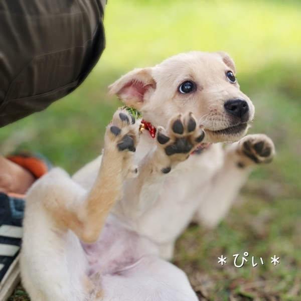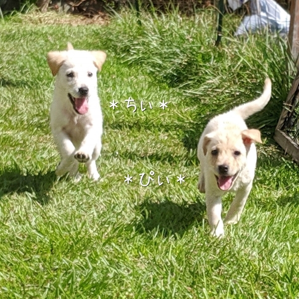 | 特徴(性格など) | 仮名:ちぃ(女の子) 体重:3.5㎏ 犬種:雑種(白・クリーム) 仮名:ぴぃ(女の子) 体重:3.0㎏ 犬種:雑種(クリーム) ⚫️天真爛漫でとっても甘えん坊です。 ⚫️お転婆で遊ぶの大好きです。 ⚫️とっても元気で身体能力が高い子です。 ⚫️人も犬も大好きで攻撃性なし。 ⚫️トイレ練習中(お外が好きです)。 ⚫️ちょっぴり怖がりで最初は人見知り・場所見知りをします。 ⚫️まだ仔犬なので、キュンキュンやピーピーと鼻鳴きします。 ⚫️まだ仔犬なので、長時間のお留守番はできません。 ⚫️保護時、皮膚病があったのでまだ少しハゲがあります(皮膚病は完治)。 |
