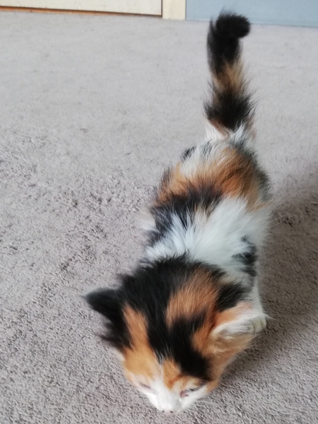 | 特徴(性格など) | 長毛の三毛猫ミッケちゃん。とっても元気な女の子です。トイレもバッチリ。毎日兄妹仲良く走り回ってます。 しっぽは長くてふさふさです。 健康状態 毎日元気に飛び回っています。離乳食も良く食べ、健康的です。 行った医療処置 ・動物病院での体調チェック ・ノミダニ駆除 ※血液検査はしておりません。 |