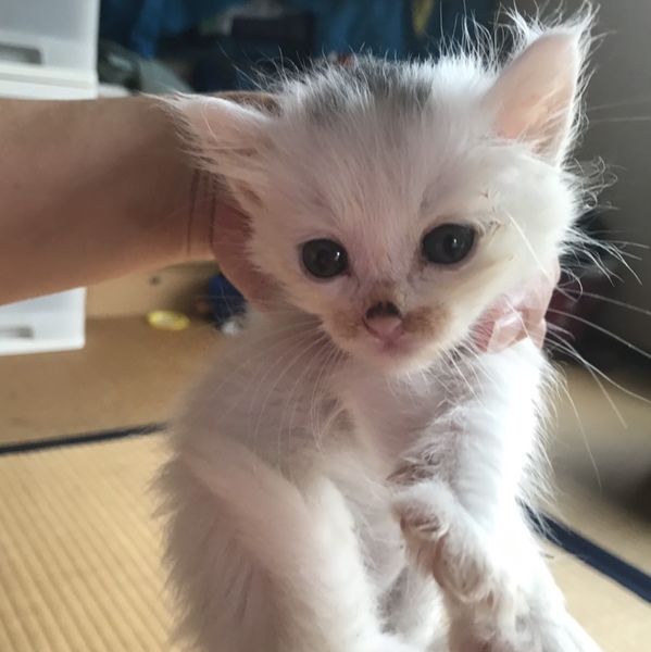 | 特徴(性格など) | 頭としっぽに模様のある、雪見(ゆきみ)ちゃん。小柄ですが、兄妹に負けず劣らず元気にスクスク成長中です。 トイレもバッチリ! 健康状態 毎日元気に飛び回っています。離乳食も良く食べ、健康的です。 行った医療処置 ・動物病院での体調チェック ・ノミダニ駆除 ※血液検査はしておりません。 |