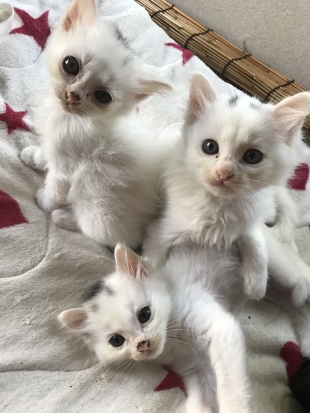| 里親募集する理由 | ※知人から、里親募集掲載を頼まれました。代理投稿です。 経緯 近隣で増えてしまった外猫。 成猫は避妊・去勢手術を済ませました。 仔猫は、やっと1ヶ月の子達と 5ヶ月の子達がいますので この子達は保護して 里親募集させて頂きます! (ありがたいことに、すでに、里親さんが決まった子達もいます。) 「保護っ子達の近況報告ブログ」 http://hogonu.blog.jp/ もございますので、ご覧下さい。 |