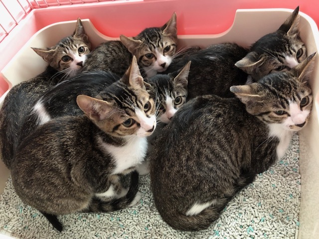 | 里親募集する理由 | 6兄妹が餌やりさん宅の車庫で育っていましたが (その方の家では飼えず、) そのままでは外に出てしまい事故なども心配で 預かって代理で里親募集しています。 人間に馴れた可愛い子達です。 よろしくお願いします。 (お母さん猫は不妊手術を済ませました。) |