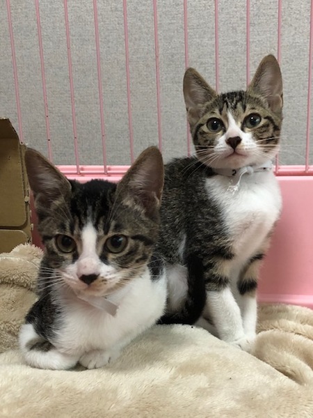 | 特徴(性格など) | 7月26日生まれ 人間大好き、天真爛漫な子達です。 そっくりな6匹で、雄一匹、雌5匹います。 みんなとても仲良しです。 先住猫が居ないお宅でしたら二匹一緒が飼いやすいかと思いますが、 ご無理はいいません。 日々の様子はhttps://ameblo.jp/yukio-fukiko/ にアップしています。 見てくださいね。 |