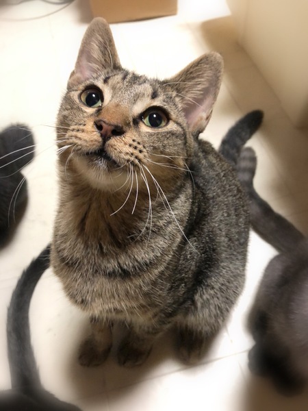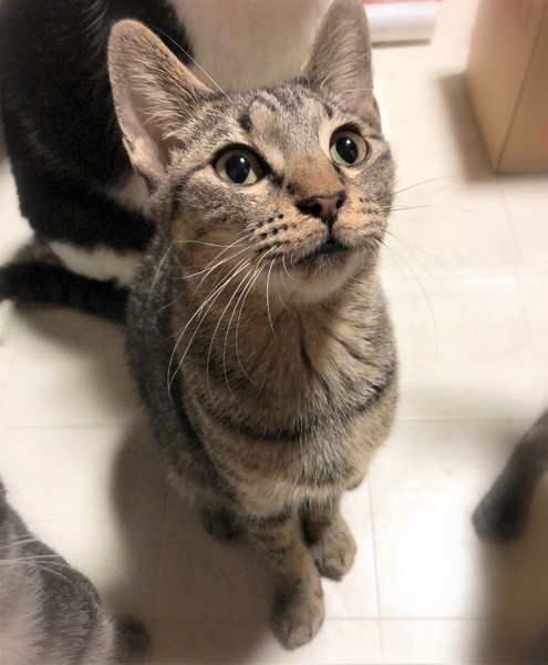 | 特徴(性格など) | 仮名、町田 細かめしましまキジトラ柄の男の子。 初対面の時は緊張した様子でしたが、2~3日ですりすりっと足元に来て、撫でればコテンと横になりゴロゴロ。 のんびりした性格で他の猫たちとも仲良く過ごしています。 |
