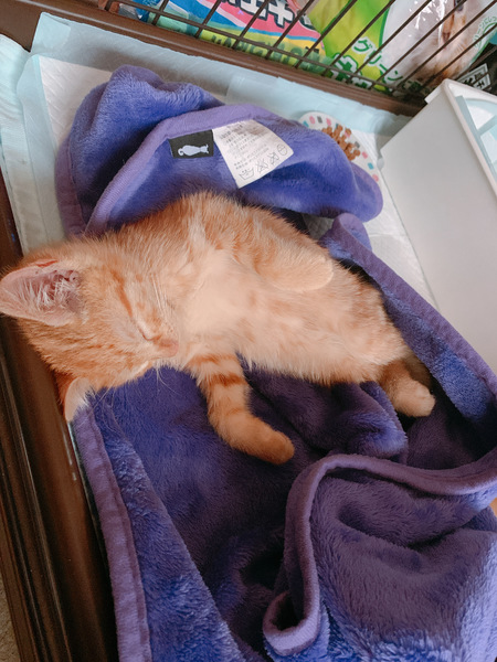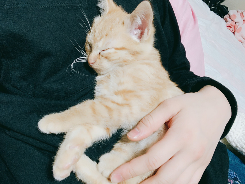 | 特徴(性格など) | 茶トラ 活発で冒険したがりですが、近寄ってきてスリスリしてきたり膝やお腹の上に乗って寝たりする甘えん坊です 拾った時からとても人懐っこいです |
