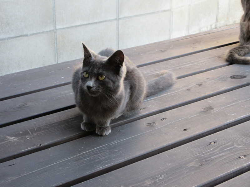 | 特徴(性格など) | メスは薄い三毛(サビ?)でふわふわの長毛、オスはグレーでロシアンブルーのようです。 | ||