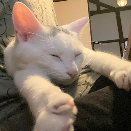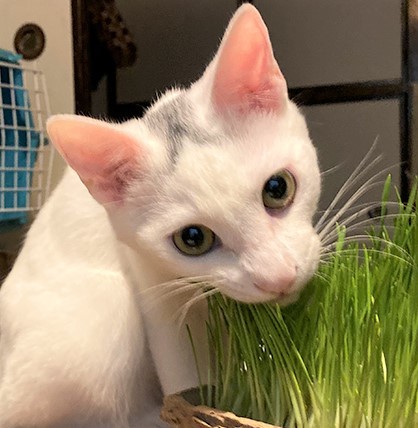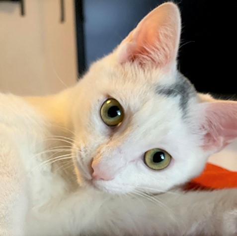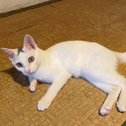 | 特徴(性格など) | 人なれ訓練のかいがあり、ひざの上で過ごすのが好きな甘えん坊になりました。元気で遊びたがり。白地に頭の上の模様と、しっぽの先がL字に曲がっているのが特徴。食べ物への執着が強いため、人間の食べ物や同居猫のごはんを荒らされない対応をしてくださる方だと嬉しいです。甘噛みもあり。 | ||