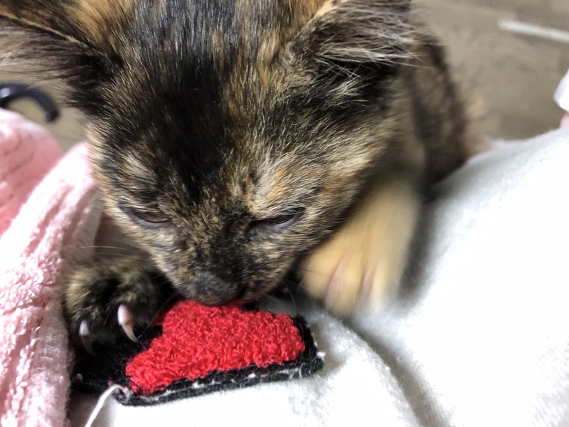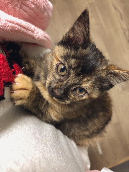| 特徴(性格など) | 黒サビの甘えん坊な女の子です!保護して2日めにして毛布ふみふみ、喉ゴロゴロととっても人懐こい子です? トレーナーを着て抱っこすると、腕に顔を埋めてふみふみするので可愛くてたまりません!?お顔はまん丸、毛足は若干長め、おててとあんよは若干短めです? おもちゃも大好きで、見せると勇猛果敢に挑んできます!?たくさん遊んでいただけたらと思います。 猫や犬も平気なようで、先住ちゃんがいても仲良くできる子かと思います☺️(一緒にするときは十分注意してあげてください) 体重は11/1時点で820g、ごはんもよく食べノミやシラミもおらず、健康状態は良好です。念のため駆虫とレボリューションは処置済みです。 ワクチンは11/9〜10あたりに接種を予定しておりますので、その後1週間程度様子見、里親さんにお渡しできるのは11/16以降になります。 ツイッターで状況をツイートしていく予定です!よければご覧ください? @ichicochico_ |
