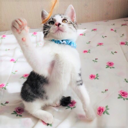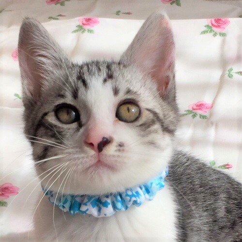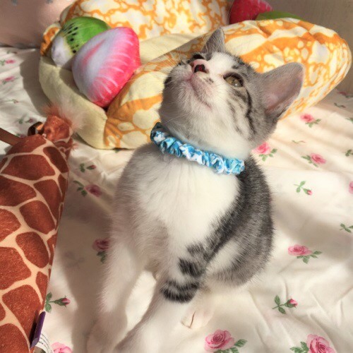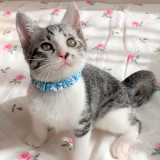 | 特徴(性格など) | 白地にグレーの綺麗な毛並みです。兄弟がいないのもあってか、まだあまり主張は激しくなく 大人しく遊んでいる感じですが、これからどんな猫ちゃんになるか楽しみです✨ | ||