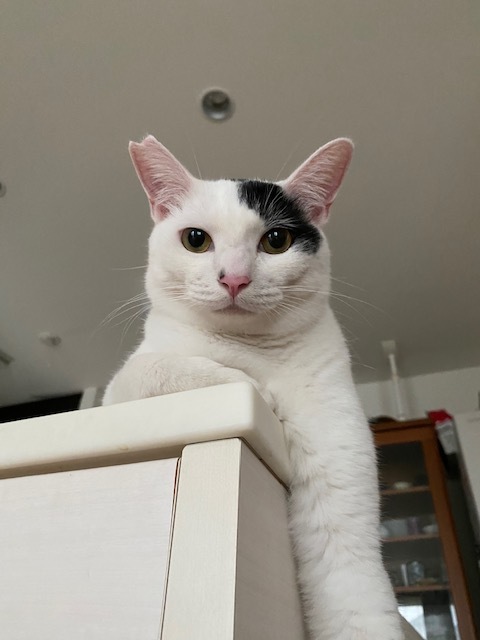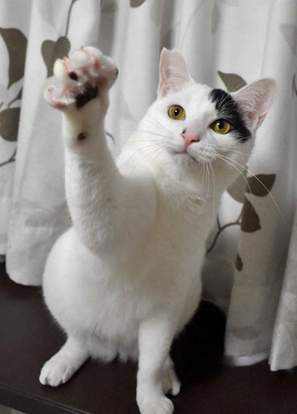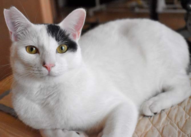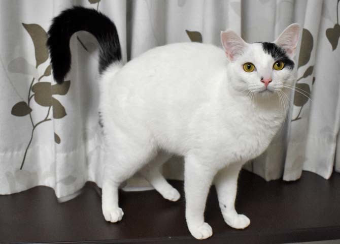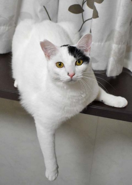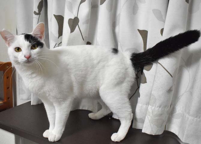 | 特徴(性格など) | 仮称:ピュンピュン丸 健康状態:良好・エイズ、白血病陰性・回虫駆虫済・レボリューション滴下済 白地に黒のポイントが数か所入った男の子。シッポは長くて真っ直ぐです。 幼児体形でお腹がぽってりしています。小さなカワイイ声で鳴きます。 その名の通り、お外をピュンピュン走り回って怖いものから逃げていました。 気が小さいので、完全室内飼育した今でも掃除機や知らない物音・大きな声などに敏感に反応して逃げます。 慣れれば二本足で立ち上がって抱っこをせがみ、抱き上げれば喉を鳴らして甘えてきます。 ネコジャラシでもよく遊びますが、レーザービームを追いかけるのも大好きです。 ニャンモックがお気に入りで、よく寝ています。ぜひ用意してあげて下さい。 お腹が空いたときは歩く人の足元にすり寄って、いつもより大きめの声でおねだりします。 気の合う猫とは仲良く遊び、寄り添って寝る事もあります。 子猫の面倒はとても良くみてくれて、頼りがいのあるお兄さん的な面も見せてくれます。 人の食べ物に興味がありますので、他の好物で気をそらせてください。 男性が苦手で自分から寄っていくこともないですし、近寄られれば逃げます。 食事はドライフードを1日3回です。 紐類を食べてしまう事があります。ネコジャラシの紐・ヘアゴム・パーカーなど衣類の紐に気を付けてください。 完全室内飼育と定期的なワクチン接種をお願いします。 環境の変化に弱いのでお引越しがなく、できればお留守番が少ないご家庭を希望します。 小学生以下のお子様がいらっしゃるご家庭には不向きの子です。 |