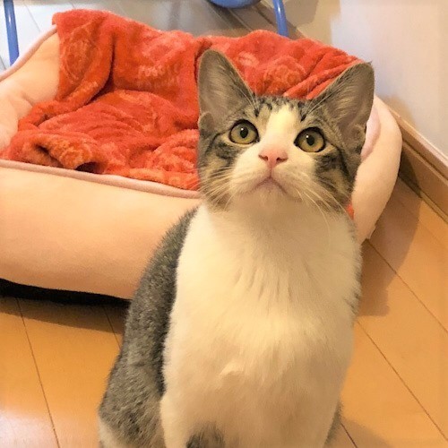 | 特徴(性格など) | 渚ちゃんと兄弟です。 ちょっと怖がりさんでヤンチャな男の子。譲渡会では固まっていますが、実は大の甘えん坊で、背中を撫でて欲しくて、ゴロゴロ喉を鳴らしながら常にスリスリしている子に変身しました。抱っこは苦手なようです。 寂しがり屋ですので、できれば姉妹のなぎさちゃんと一緒か、先住猫さんのいるご家庭とご縁があると嬉しく思います。お留守番も上手です。 |