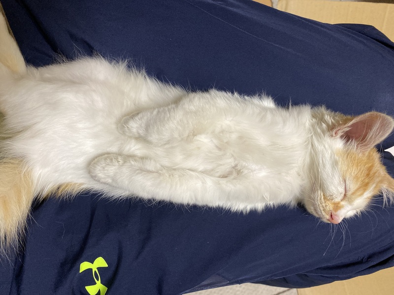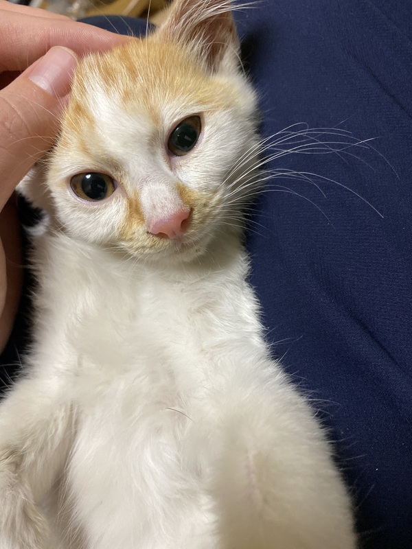 | 特徴(性格など) | 茶トラ白です。非常にモフモフしていて触り心地はいいです。まだ保護したばかりでそこまで元気がないの性格はよくわかりません。ただ、暴れたりは今のところありませんし、逃げようともしません。 | ||