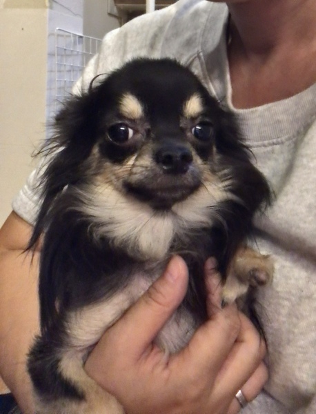 | 特徴(性格など) | ブラックタンのロングコートチワワ、3歳、オス。 キリっとしたようなとてもイケメンな顔立ちです。 左前脚首から下が2つに分かれている奇形があります。 が、歩くことも遊ぶことも普通に出来ます。 とてもビビリで、ケージの奥に張り付いて出てこないような子です。 でも他犬と遊んだり一緒にいることは全然大丈夫なので、人が怖いのだと思います。 こういう子はとても甘えん坊になるケースがよくあります。 |